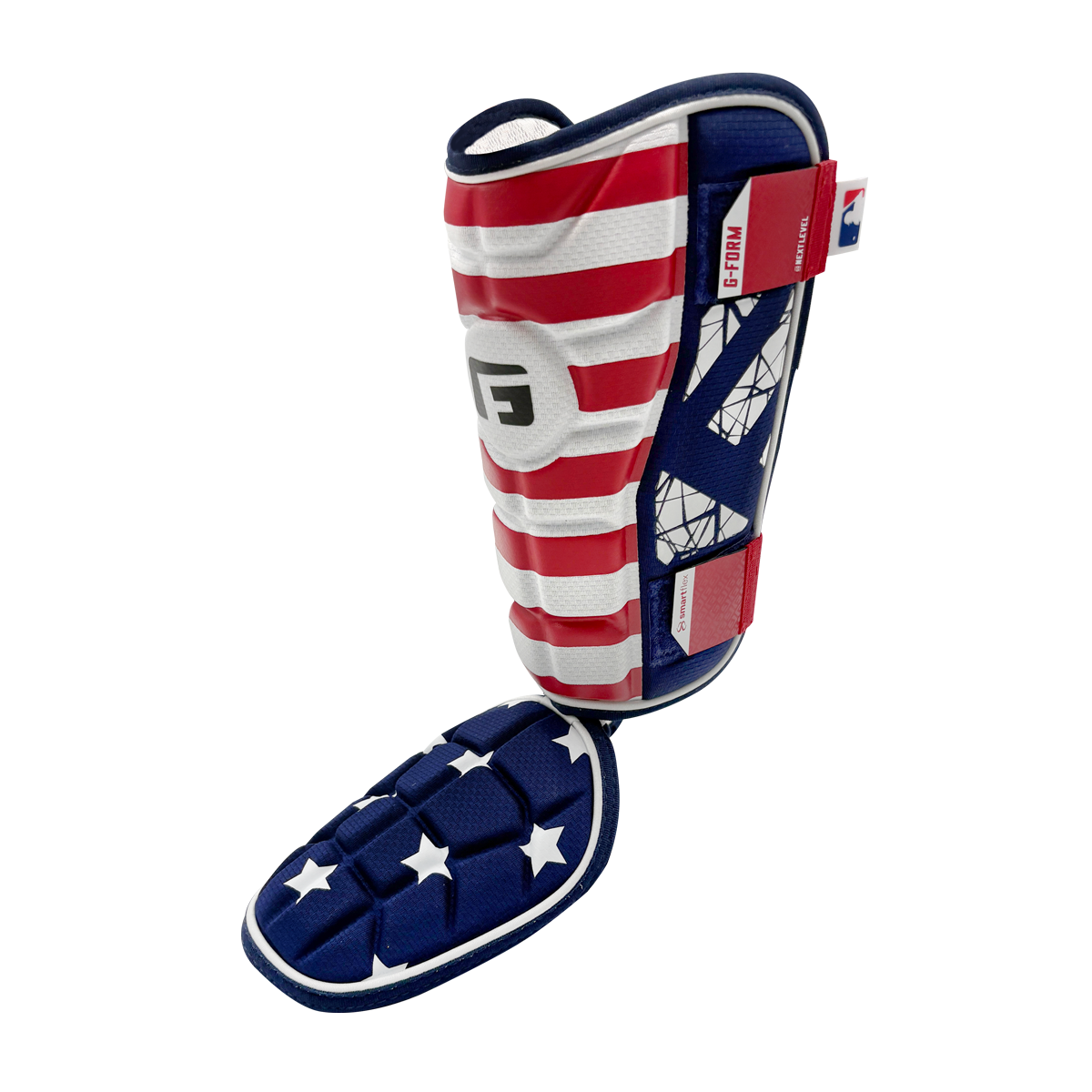 This is a limited edition 4th of July design! The Elite Baseball Batter's Leg Guard delivers Big League impact protection with G-Form’s new two-piece design, adjustable straps, and patented SmartFlex technology. Soft and flexible during play, it hardens on impact to absorb up to 2X the force of traditional hard-shell guards which results in fewer injuries and superior confidence. True body mapping means it’s ready to wear—no molding or shaping needed. Lightweight, breathable, and built with 4-way stretch for total comfort and freedom of movement. Trusted by MLB players and athletic trainers, G-Form's MLB Authentic Collection protective gear doesn't just guard against impact... it delivers Big League results. G-Form is An Official Protective Equipment Supplier of Major League Baseball.